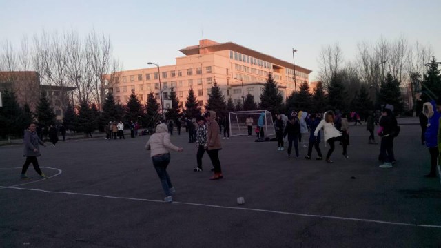 本站讯 自11月5日起,我校开启全校秋冬季晨练活动,因活动场地限制,本次晨练以2014级学生为主。早上6:00伴随着广播里传来的运动员进行曲,新生寝室便空无一人,大家走出寝室、走向运动场。虽然天气寒冷,但都挡不住同学们的热情,当大绳有序落地的节拍声、游戏中传来的爽朗笑声、跑步队伍中纳喊的口号声声入耳,当青年长拳的出击、小苹果的韵律舞动人心,冬天的早晨瞬间被绥化学院大一学子的运动活力所感染,营造了我校冬季最具特色的校园文化。