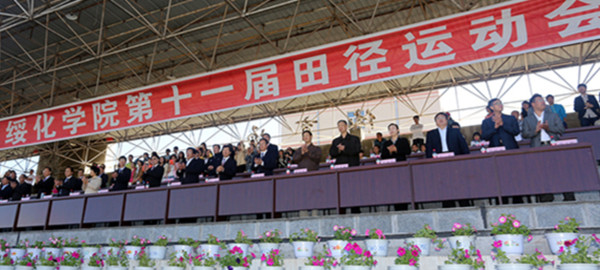上午8时,伴随着雄壮的《运动员进行曲》,国旗护卫队、校旗护卫队、花束队、铜管乐队以及各学院、机关、后勤、图书馆等方队依次入场。各代表队踏着整齐的步伐,接受大会检阅。鼓声悦耳,激情飞扬,当各学院方队昂首阔步走过主席台并向全校师生展现他们精神风貌时,在主席台就坐的领导和嘉宾起立为他们鼓掌喝彩。院长张凤武宣布我校第十一届田径运动会开幕。庄严的国歌和激昂的校歌响彻体育场上空,在全体师生的注目下,国旗和校旗在体育场冉冉升起。