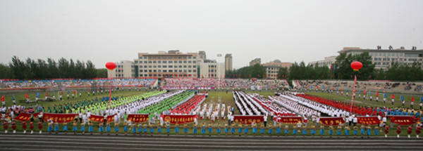 万物勃发,彩旗飘扬,在学校成功升本十周年之际,我校第十一届田径运动会于5月29日-30日隆重举行。学校领导顾建高、张凤武、董广芝、张宝君、刘绍武、田军、李春雨、孙庆平、离退休老同志、全校师生员工及特邀的12名留守儿童欢聚一堂,共享体育盛会。开幕式由工会副主席孙强主持。