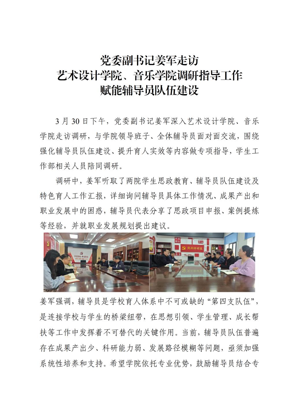 党委副书记姜军走访艺术设计学院、音乐学院调研指导工作赋能辅导员队伍建设